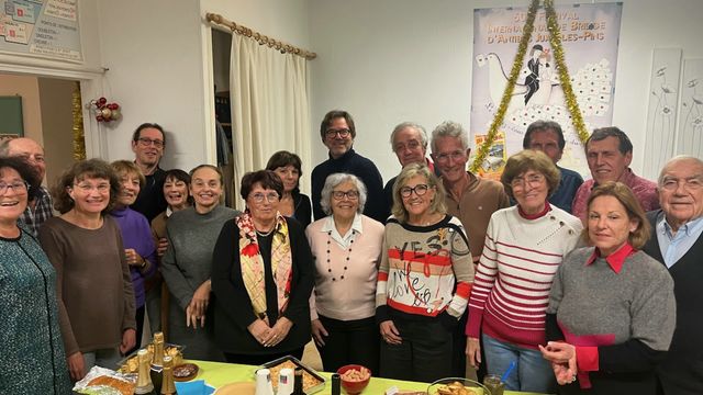 La fin des cours du premier trimestre a été fêtée par élèves de tous les cours. Dans le tournoi à donnes commentées de 9 tables, les joueurs de première ou deuxième année étaient associés à des partenaires plus expérimentés, leur permettant ainsi de corriger leurs erreurs. La matinée s'est achevée, comme d'habitude, par un moment festif, toujours dans une ambiance amicale. Bravo à tous ! Plus tôt dans la semaine, les élèves débutants avaient eux aussi disputé un tournoi à donnes préparées avant de partager un bon moment autour d'une table. |